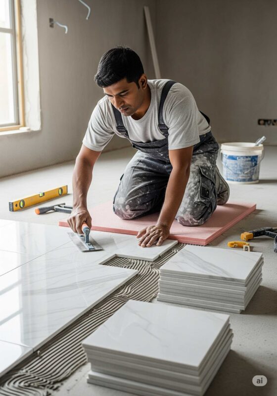 Seamless installation of marble floors with perfect leveling and alignment, ensuring a flawless and luxurious finish.
